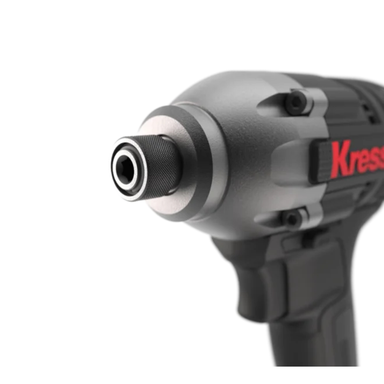 Kress Akkuschlagschrauber 20V / 4Ah / 230 Nm. Leichter, kompakter und handlicher Schrauber mit hoher Leistung. Hochbelastbare 6kant (1/4") Direktbitaufnahme. Bürstenloser Motor, LED /Licht, variable Dreigangsteuerung