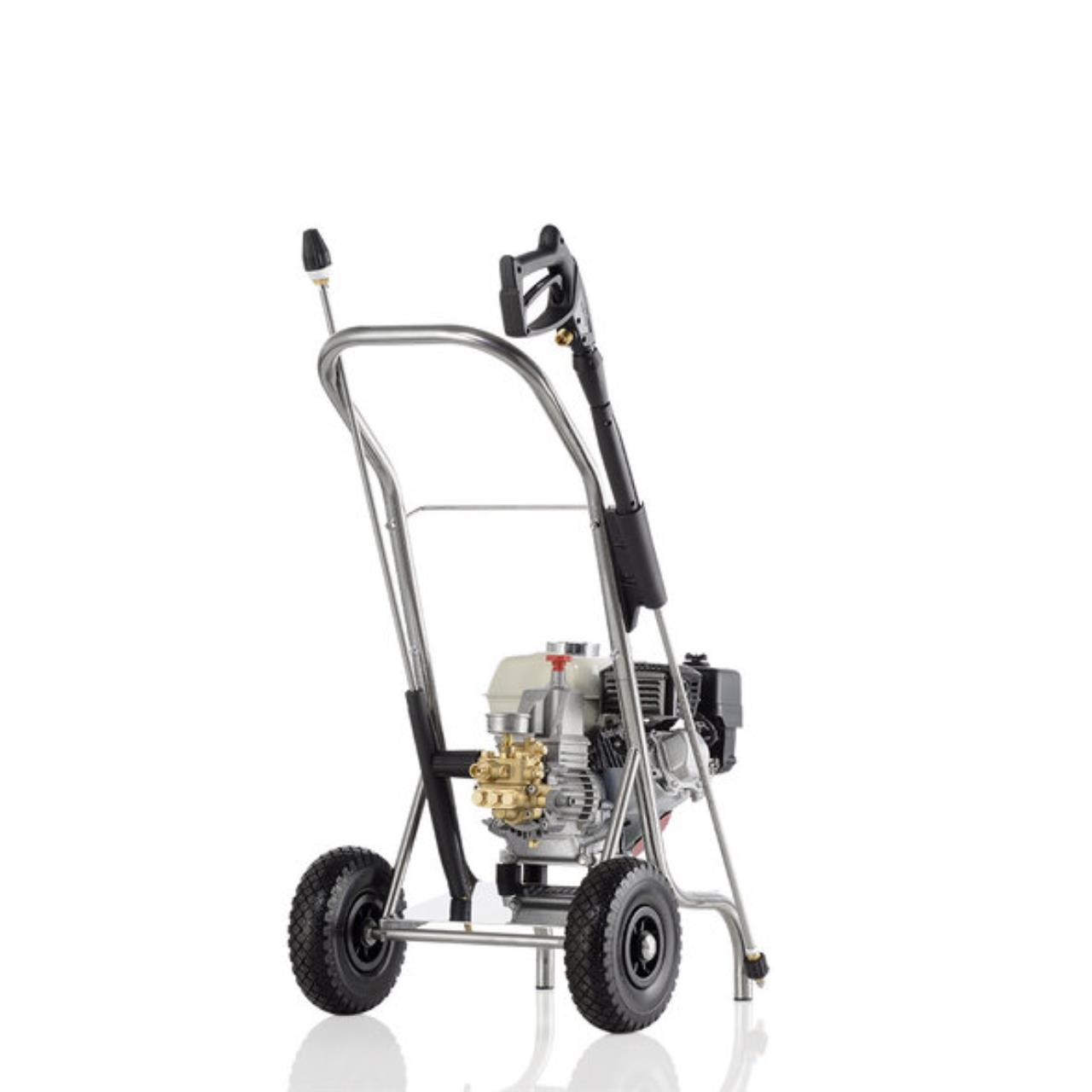 Mit Kränzle Hochdruckreinigern mit Benzinmotoren sind Sie auf der sicheren Seite, wenn höchste Reinigungskraft unabhängig von der Stromversorgung gefragt ist. Die Profi-Jet-Serie überzeugt durch ein äußerst robustes Edelstahl-Fahrgestell, einen servicefreundlichen Honda-Motor mit integrierter Ölmangelsicherung und einem praktischen Ordnungssystem für Hochdruckpistole und Reinigungslanzen. Die optionale Drehzahlregulierung reduziert Geräusch und Kraftstoffverbrauch.